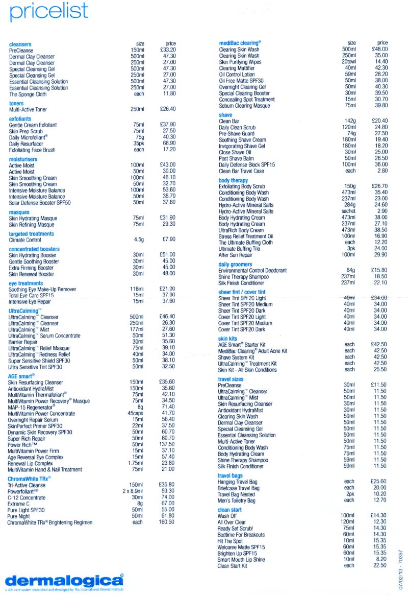 dermalogica Prices |